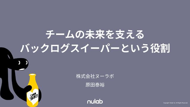 チームの未来を⽀える バックログスイーパーという役割 株式会社ヌーラボ 原⽥泰裕 Copyright Nulab Inc. All Rights Reserved.