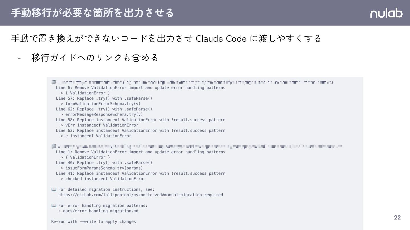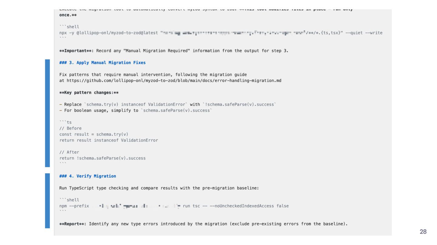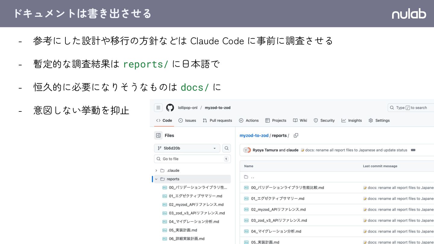 Code に捨てる予定のコードを書かせるのは楽しい! - Codemod を実装させることで漏れなく移行させられる - Codemod で実現しづらい変更はプロンプトで変更させるのはアリ - t_wada プロンプトによる TDD はお手軽 - Claude Code Commands で指示を共有可能な形にすれば再現性のある作業ができる • https://github.com/lollipop-onl/zod-vs-myzod-benchmark • https://github.com/lollipop-onl/find-myzod-schema • https://github.com/lollipop-onl/myzod-to-zod