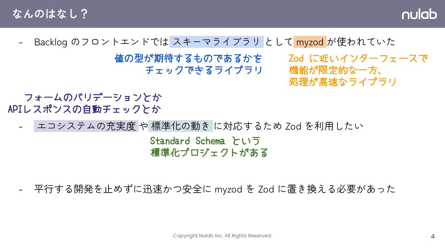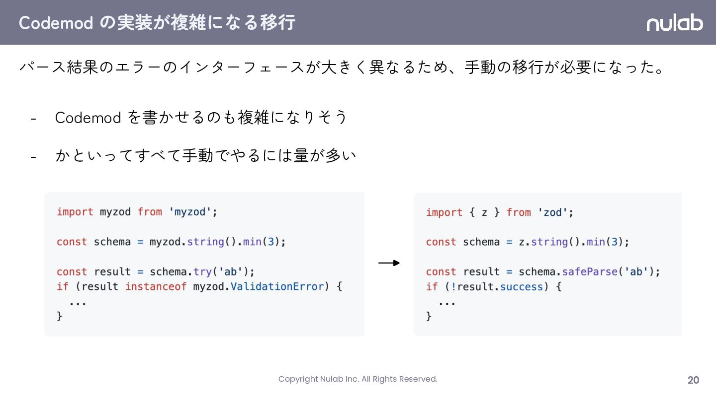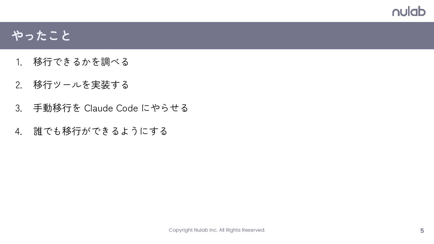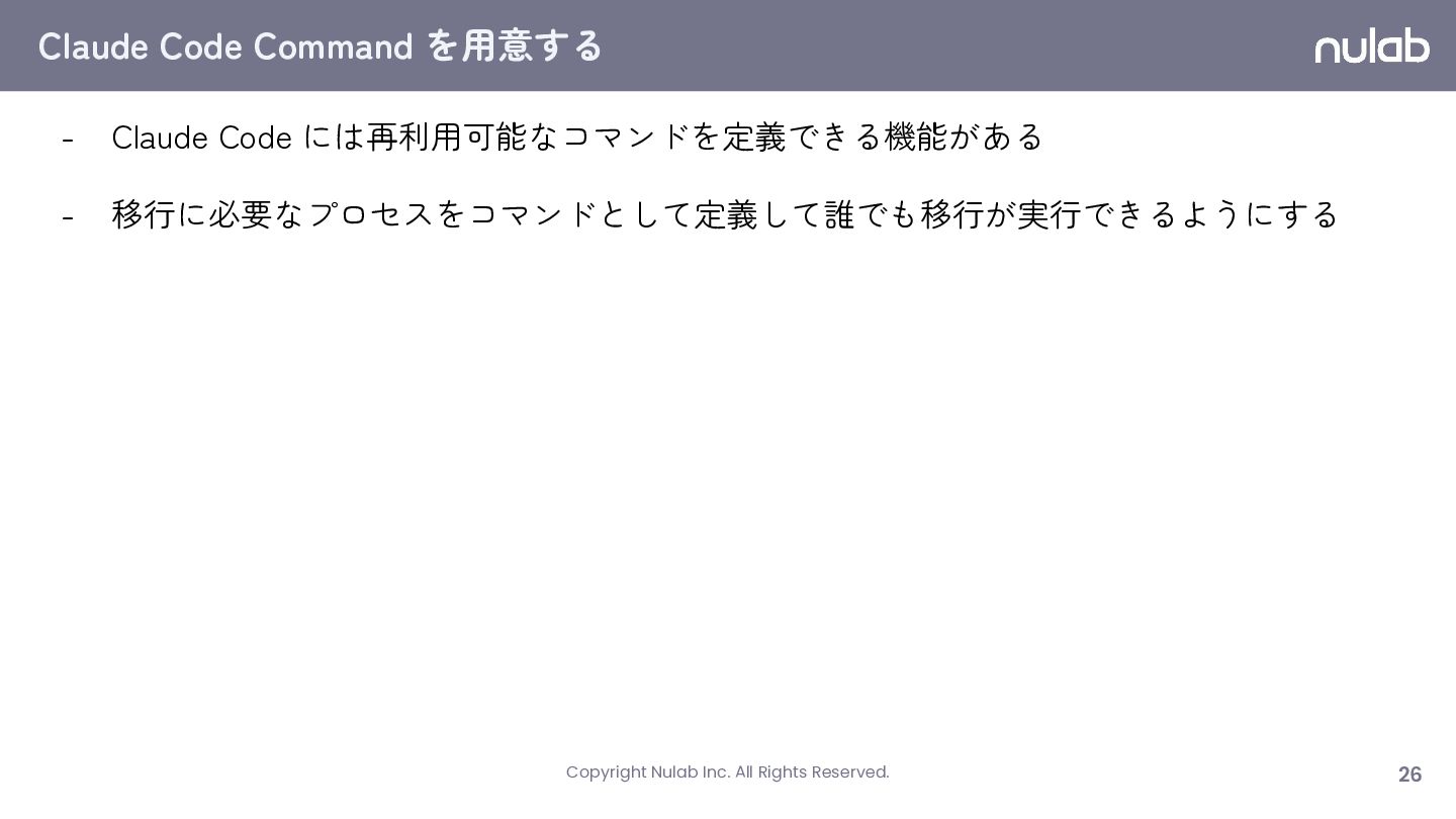 Code に捨てる予定のコードを書かせるのは楽しい! - Codemod を実装させることで漏れなく移行させられる - Codemod で実現しづらい変更はプロンプトで変更させるのはアリ - t_wada プロンプトによる TDD はお手軽 - Claude Code Commands で指示を共有可能な形にすれば再現性のある作業ができる • https://github.com/lollipop-onl/zod-vs-myzod-benchmark • https://github.com/lollipop-onl/find-myzod-schema • https://github.com/lollipop-onl/myzod-to-zod