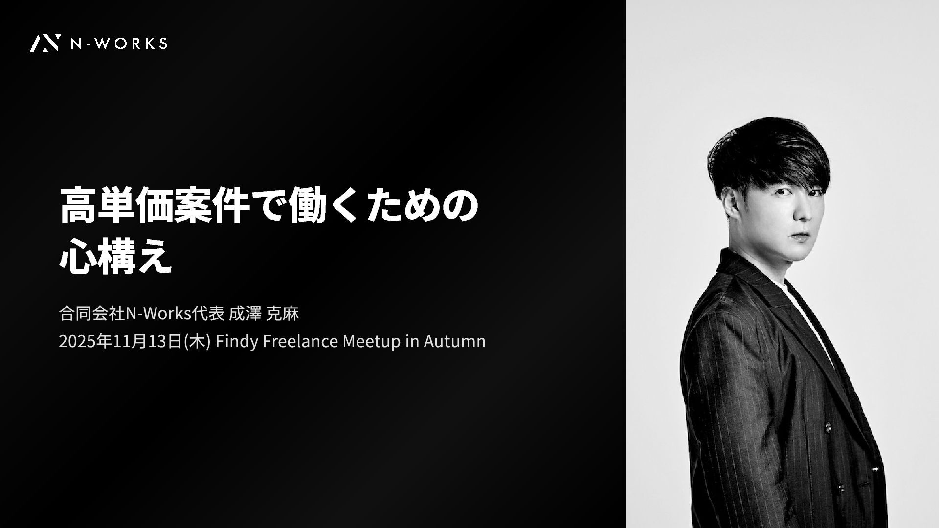 高単価案件で働くための 心構え 合同会社N-Works代表 成澤 克麻 2025年11月13日(木) Findy Freelance Meetup in