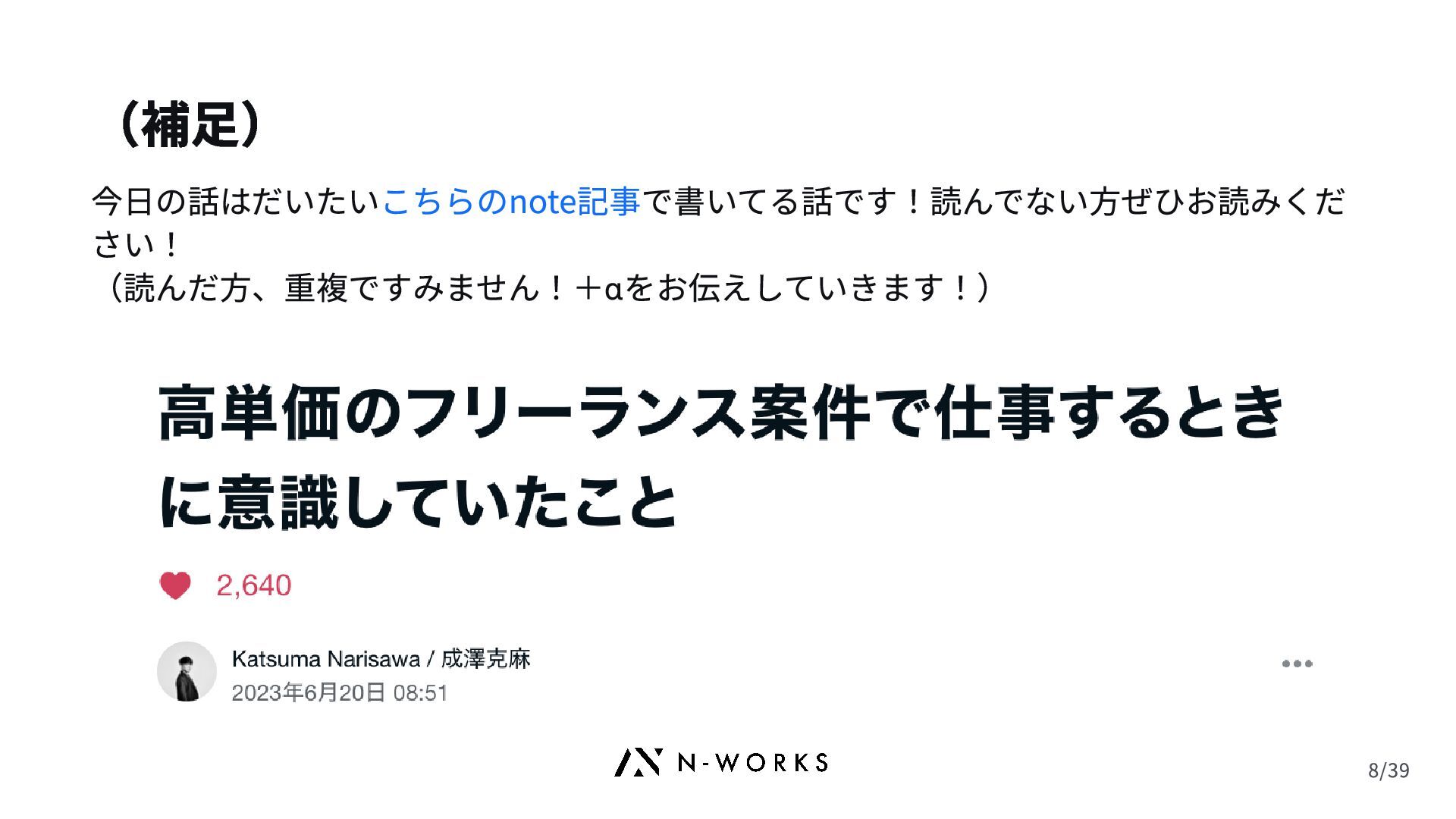 (補足) 今日の話はだいたいこちらのnote記事で書いてる話です!読んでない方ぜひお読みくだ さい! (読んだ方、重複ですみません!+αをお伝えしていきます!) 8/39