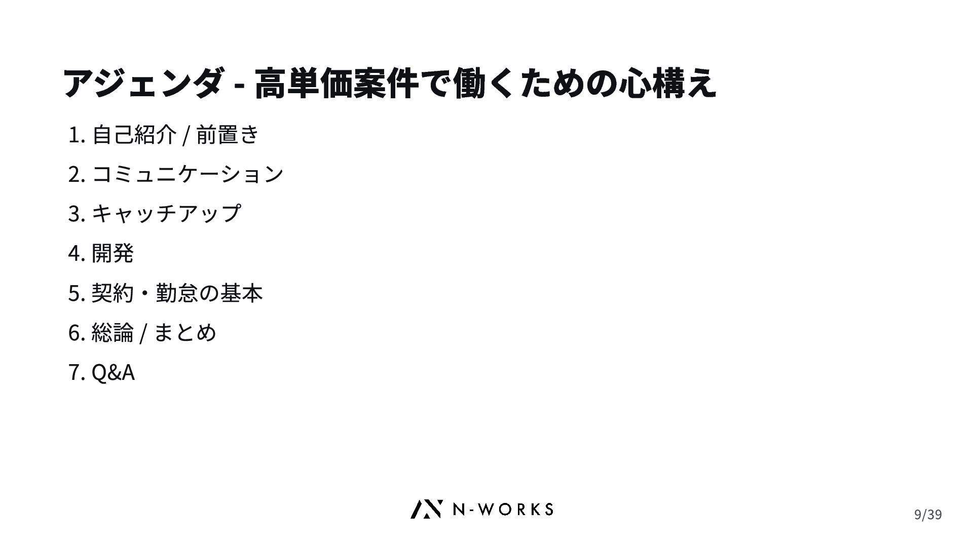 アジェンダ - 高単価案件で働くための心構え 1. 自己紹介 / 前置き 2. コミュニケーション 3.