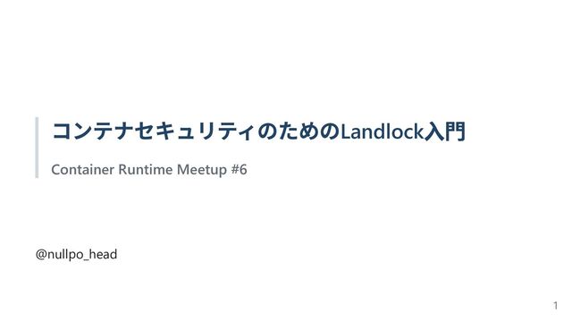 コンテナセキュリティのためのLandlock入門 Container Runtime Meetup #6 @nullpo_head 1