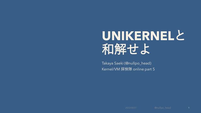 UNIKERNELと 和解せよ Takaya Saeki (@nullpo_head) Kernel/VM 探検隊 online part 5