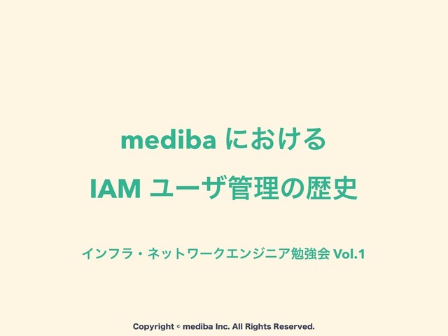 $PQZSJHIUNFEJCB*OD"MM3JHIUT3FTFSWFE mediba ʹ͓͚Δ IAM Ϣʔβཧͷྺ࢙ ΠϯϑϥɾωοτϫʔΫΤϯδχΞษڧձ Vol.1