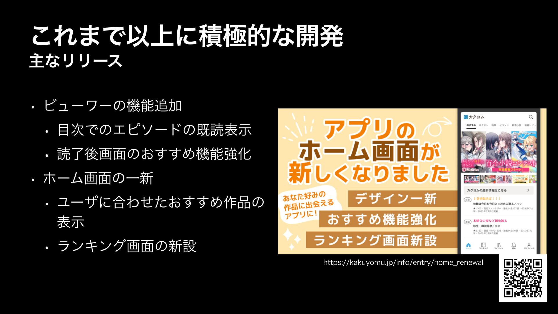 w ϏϡʔϫʔͷػೳՃ w ࣍ͰͷΤϐιʔυͷطಡදࣔ w ಡྃޙը໘ͷ͓͢͢ΊػೳڧԽ w ϗʔϜը໘ͷҰ৽ w Ϣʔβʹ߹Θ͓ͤͨ͢͢Ί࡞ͷ