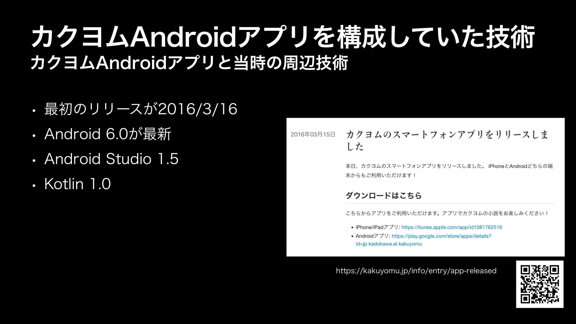 w ࠷ॳͷϦϦʔε͕ w "OESPJE͕࠷৽ w "OESPJE4UVEJP w ,PUMJO ΧΫϤϜ"OESPJEΞϓϦΛߏ͍ٕͯͨ͠ज़ ΧΫϤϜ"OESPJEΞϓϦͱ࣌ͷपลٕज़