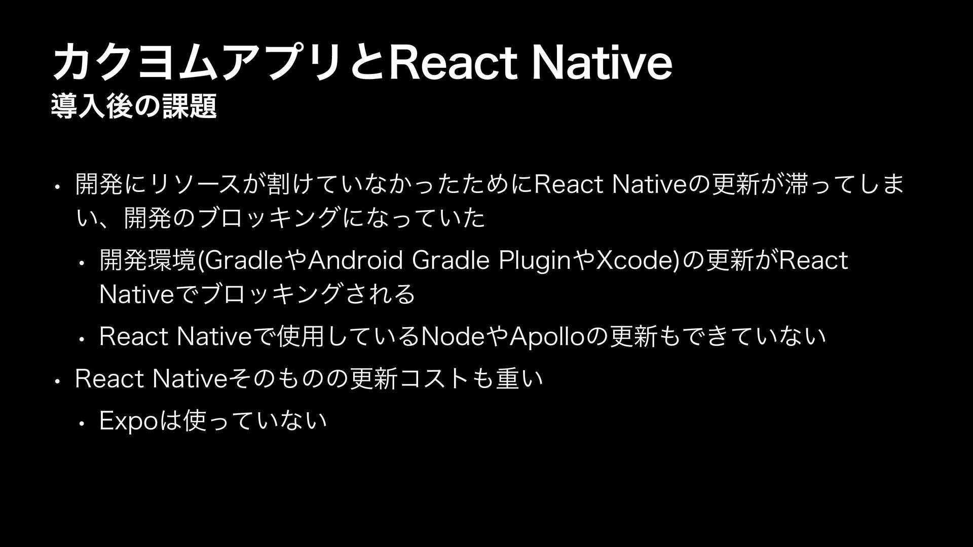 w 3FBDU/BUJWFͰ༻͍ͯ͠Δ/PEF"QPMMPͷߋ৽Ͱ͖͍ͯͳ͍ w 3FBDU/BUJWFͦͷͷͷߋ৽ίετॏ͍ w &YQP͍ͬͯͳ͍