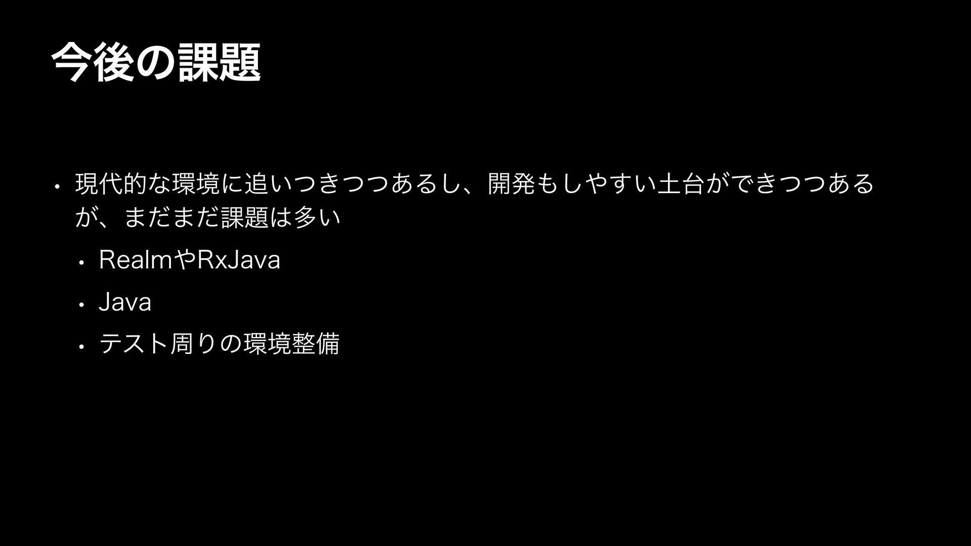ࠓޙͷ՝ w ݱతͳڥʹ͍͖ͭͭͭ͋Δ͠ɺ։ൃ͍͕͢͠Ͱ͖ͭͭ͋Δ ͕ɺ·ͩ·ͩ՝ଟ͍ w 3FBMN3Y+BWB w +BWB w ςετपΓͷڥඋ
