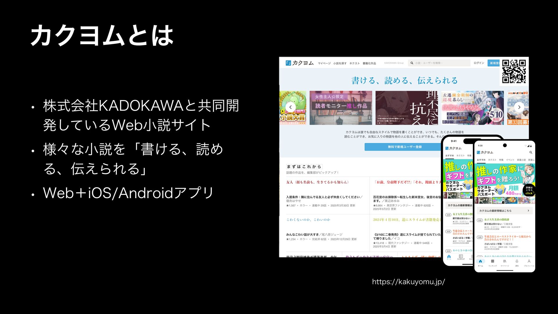 ΧΫϤϜͱ w גࣜձࣾ,"%0,"8"ͱڞಉ։ ൃ͍ͯ͠Δ8FCখઆαΠτ w ༷ʑͳখઆΛʮॻ͚ΔɺಡΊ Δɺ͑ΒΕΔʯ w 8FCʴJ04"OESPJEΞϓϦ IUUQTLBLVZPNVKQ