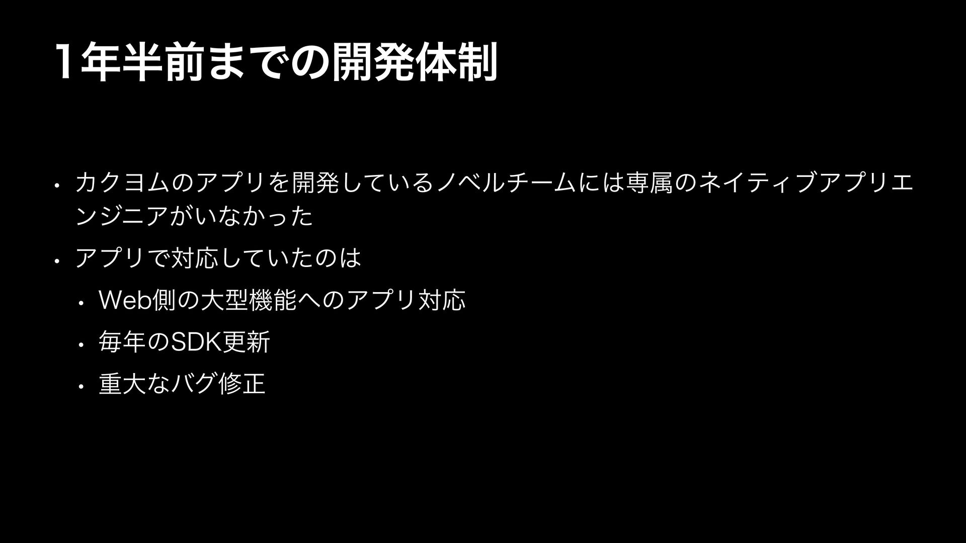 લ·Ͱͷ։ൃମ੍ w ΧΫϤϜͷΞϓϦΛ։ൃ͍ͯ͠ΔϊϕϧνʔϜʹઐଐͷωΠςΟϒΞϓϦΤ ϯδχΞ͕͍ͳ͔ͬͨ w ΞϓϦͰରԠ͍ͯͨ͠ͷ w 8FCଆͷେܕػೳͷΞϓϦରԠ w ຖͷ4%,ߋ৽