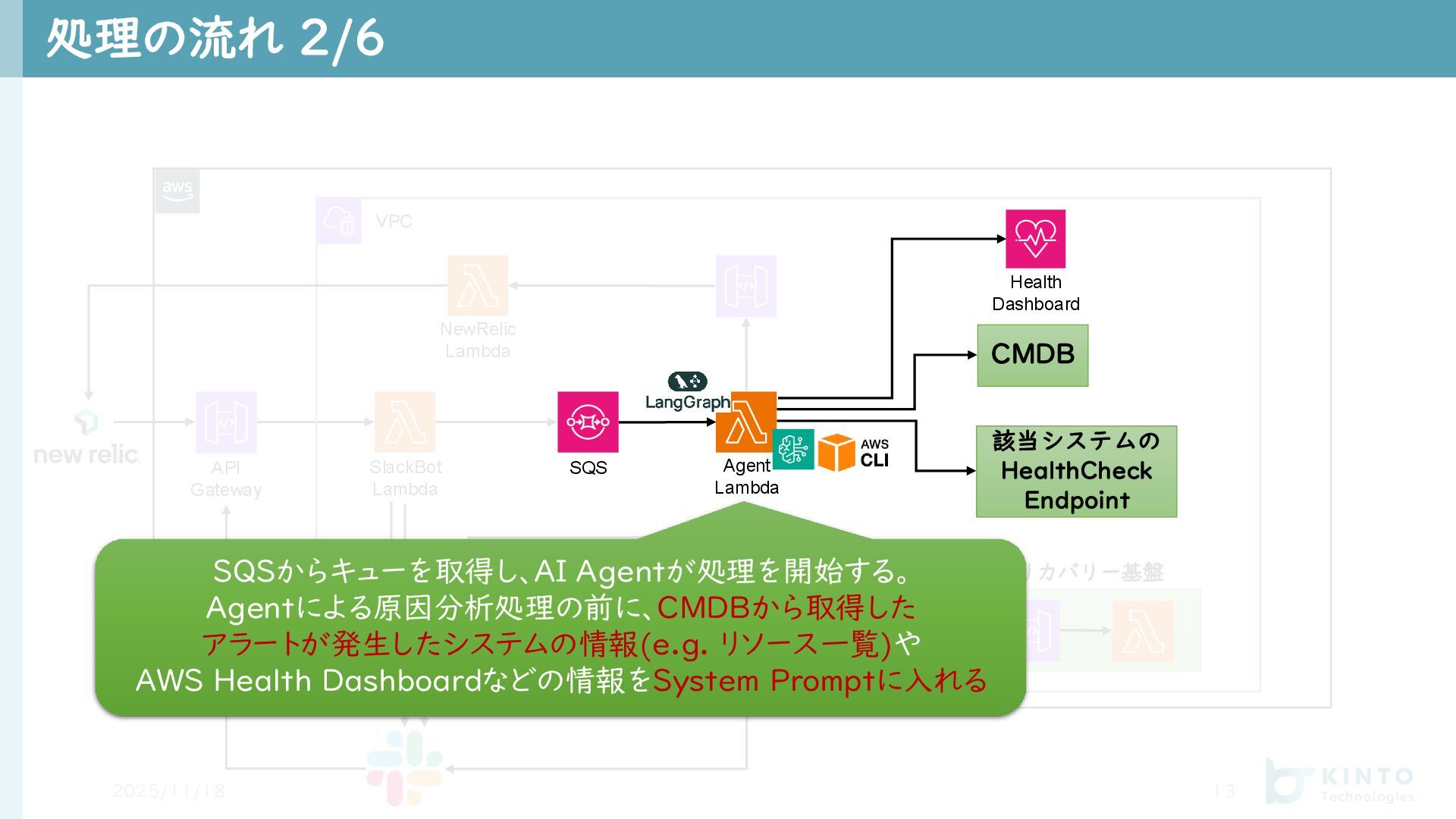 処理の流れ 1/6 2025/11/18 11 VPC NewRelic Lambda CMDB Health Dashboard
