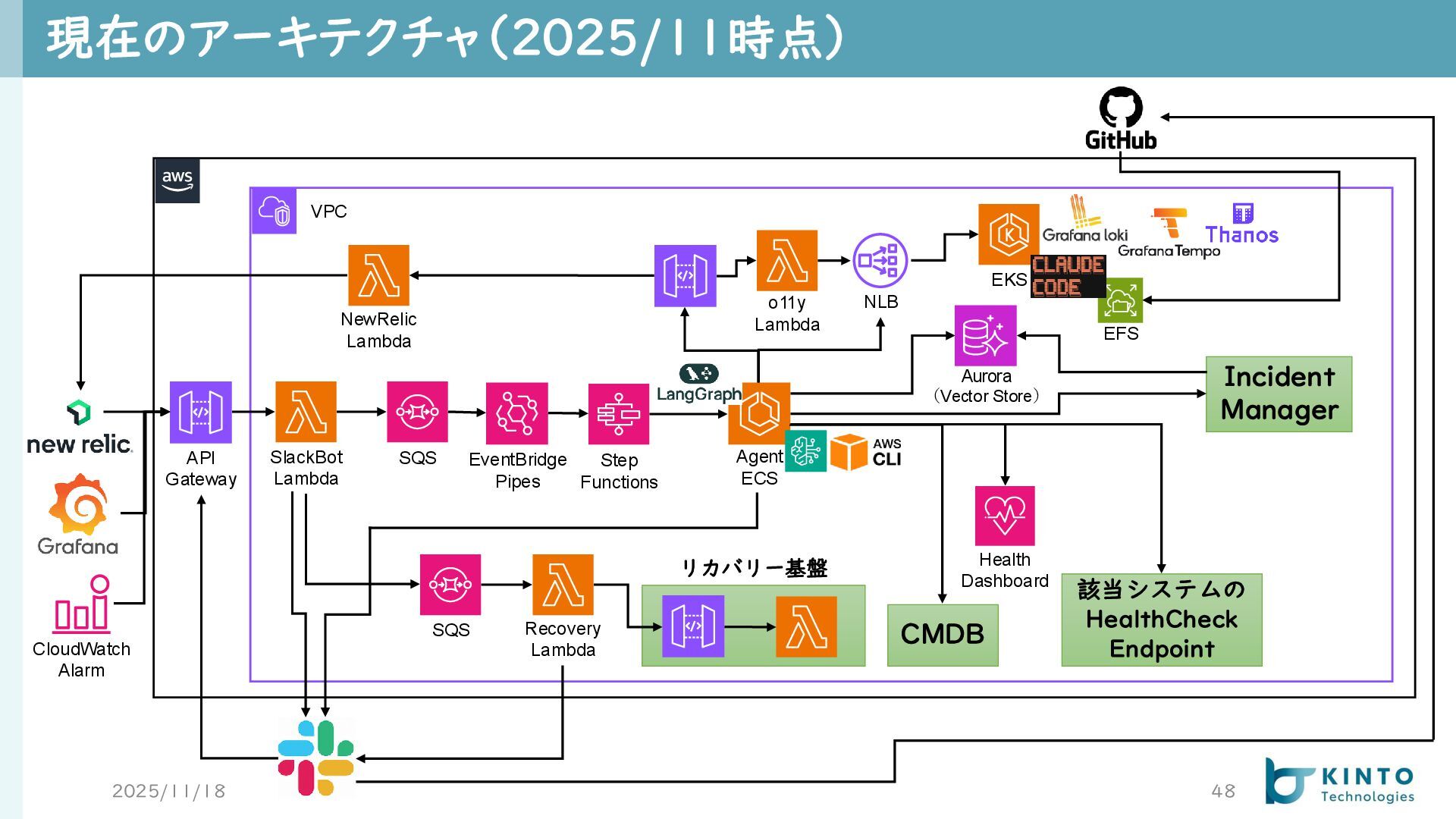 現在のアーキテクチャ(2025/11時点) 2025/11/18 48 VPC API Gateway SlackBot Lambda SQS NewRelic
