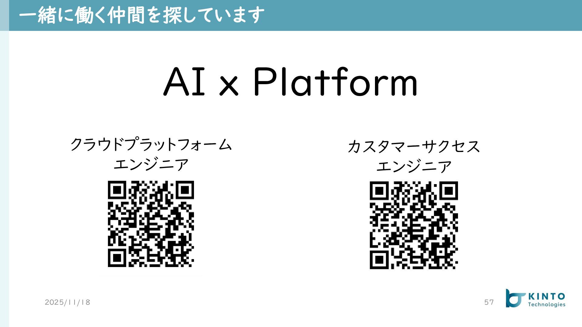 一緒に働く仲間を探しています 2025/11/18 57 クラウドプラットフォーム エンジニア カスタマーサクセス エンジニア AI x Platform