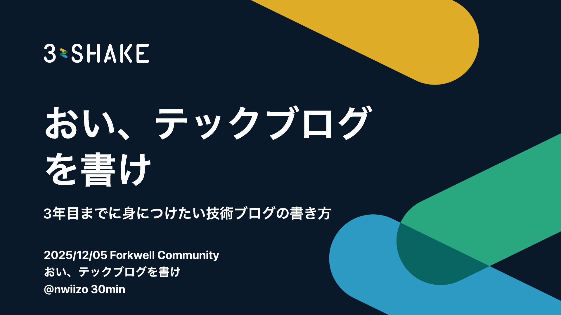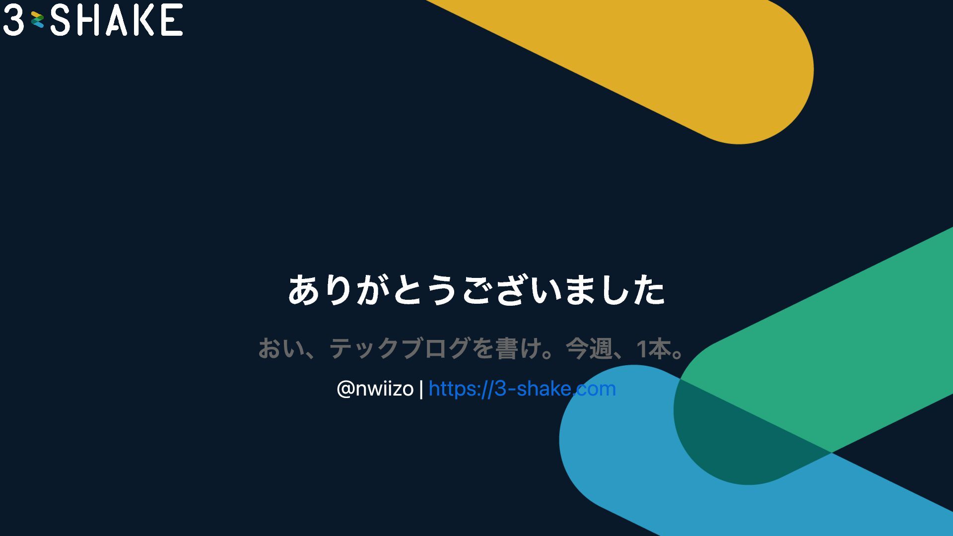 ありがとうございました おい、テックブログを書け。今週、1本。 @nwiizo | https://3-shake.com