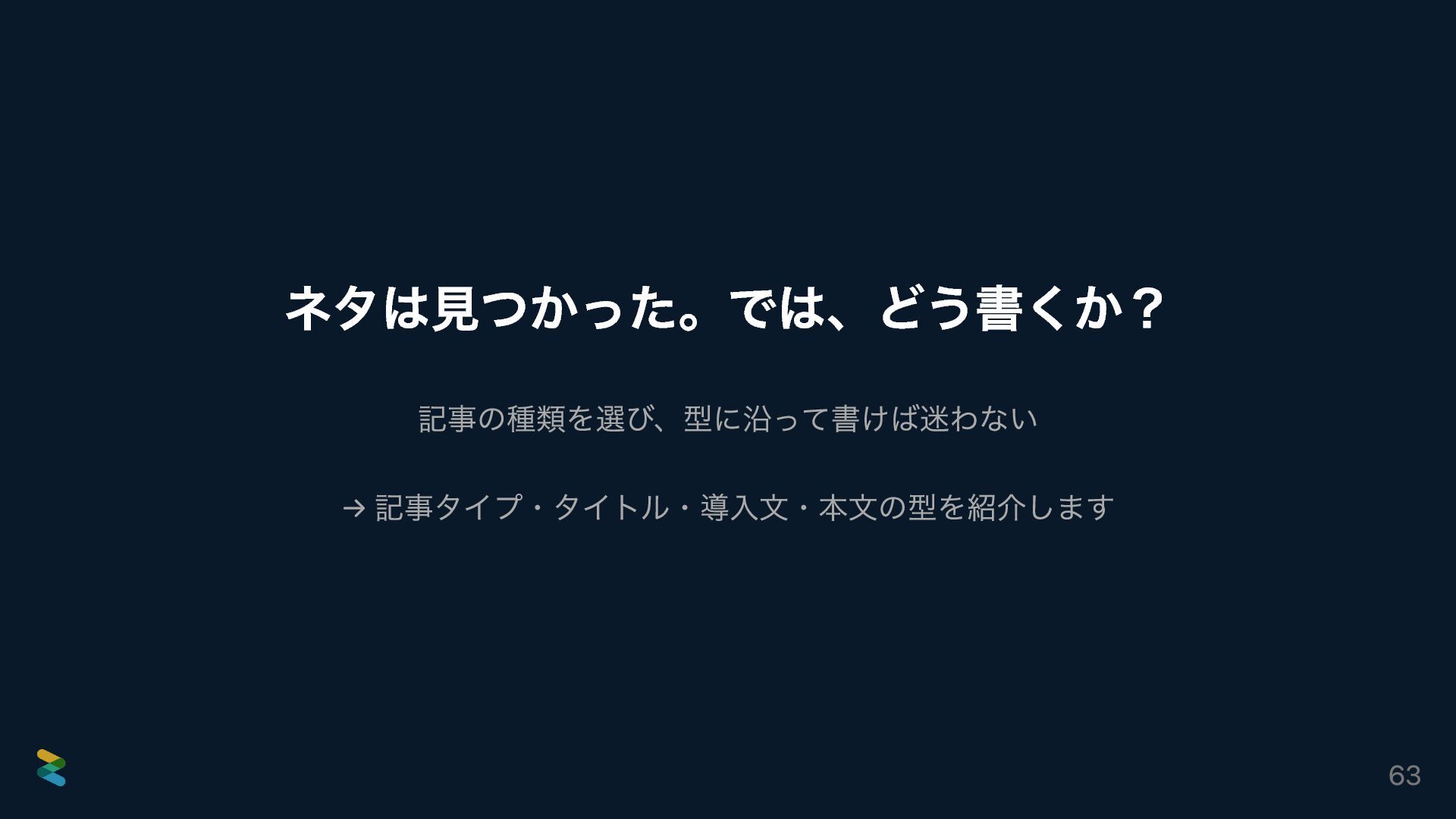 ネタは見つかった。では、どう書くか? 記事の種類を選び、型に沿って書けば迷わない → 記事タイプ・タイトル・導入文・本文の型を紹介します 65