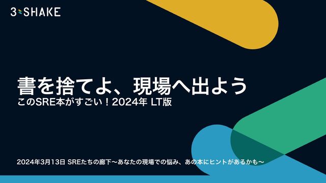 書を捨てよ、現場へ出よう このSRE本がすごい!2024年 LT版というタイトルで登壇してきました。