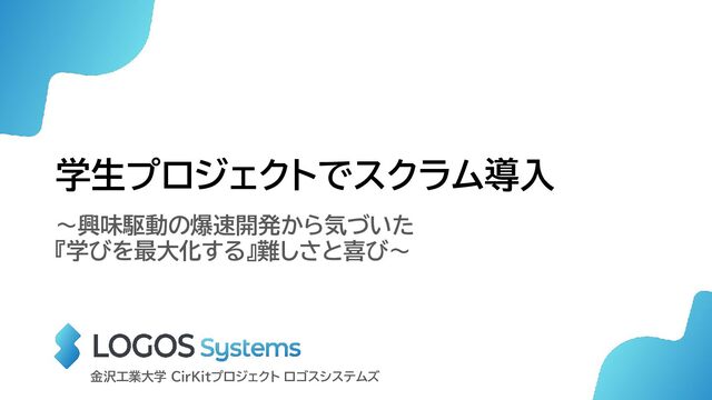 学生プロジェクトでスクラム導入 〜興味駆動の爆速開発から気づいた 『学びを最大化する』難しさと喜び〜 金沢工業大学 CirKitプロジェクト ロゴスシステムズ
