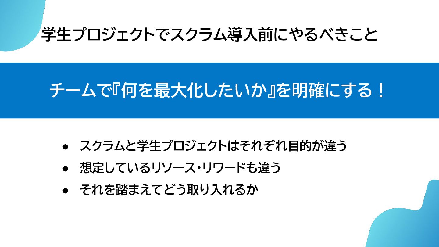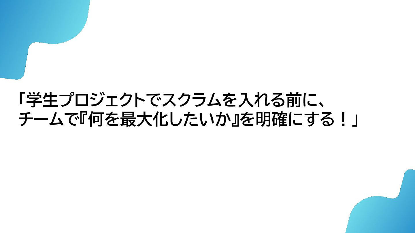 「学生プロジェクトでスクラムを入れる前に、 チームで『何を最大化したいか』を明確にする!」
