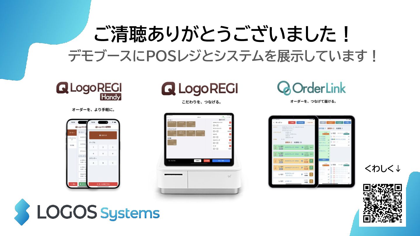 ご清聴ありがとうございました! デモブースにPOSレジとシステムを展示しています! くわしく↓