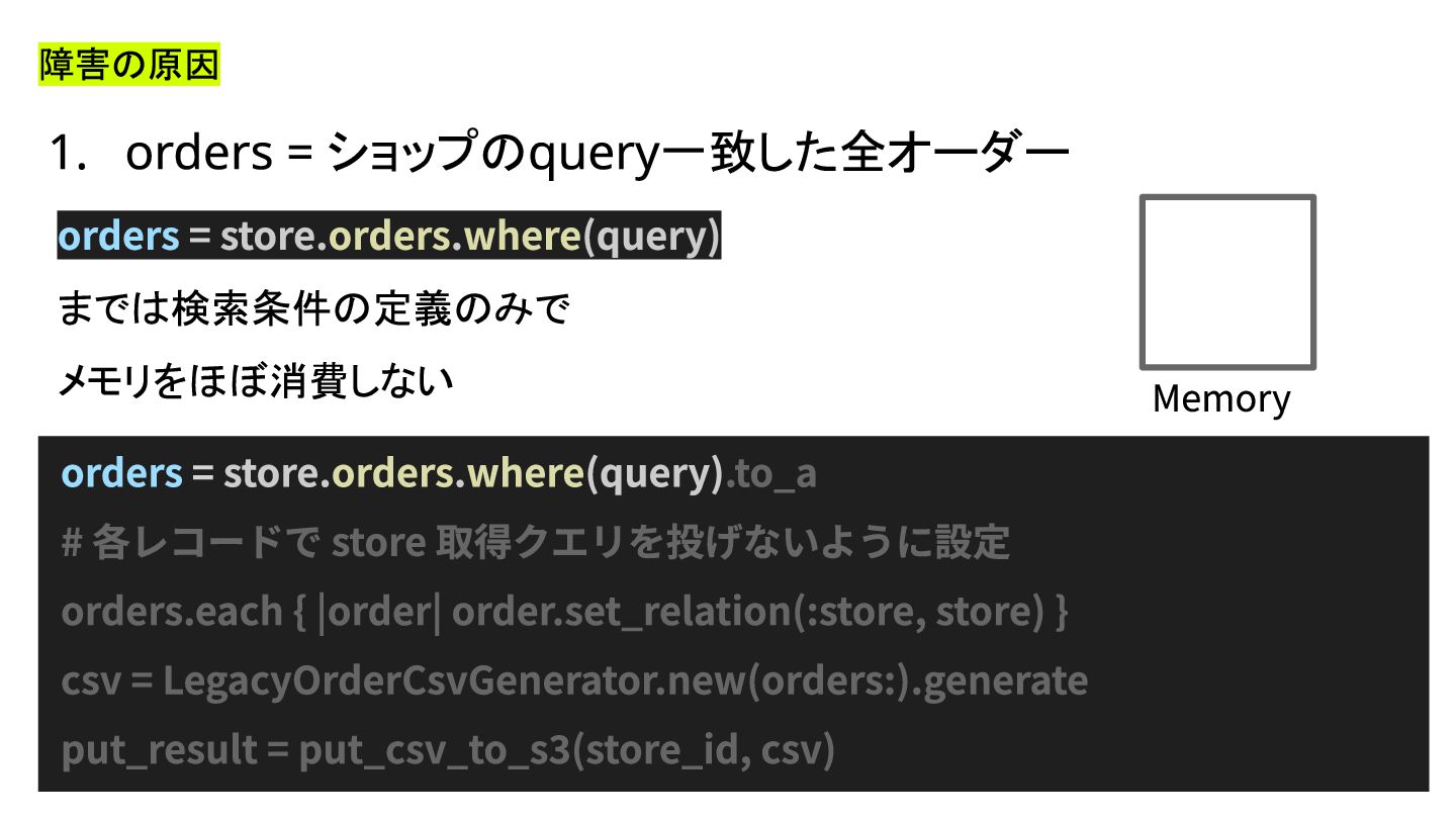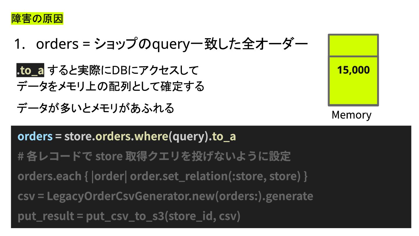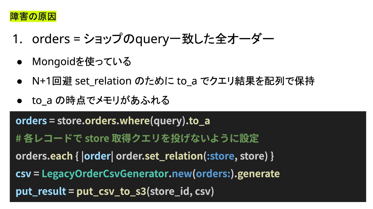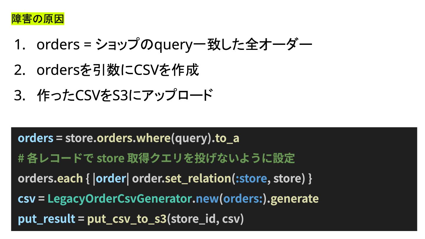 STORES ネットショップ には、オーダー一覧をCSVエクスポートする機能があります。オーダー件数が多いとタイムアウトする課題があったため、オーダーが5,000件以上の場合、SidekiqでCSVを非同期作成してメール送信する機能を開発しました。