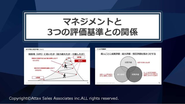 マネジメントと 3つの評価基準との関係 Copyright©Attax Sales Associates inc.ALL rights reserved.