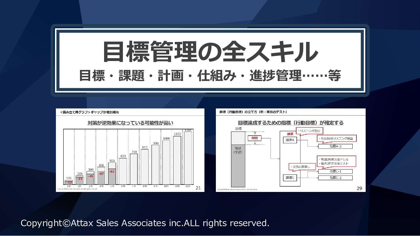 目標管理の全スキル 目標・課題・計画・仕組み・進捗管理……等 Copyright©Attax Sales Associates inc.ALL rights reserved.