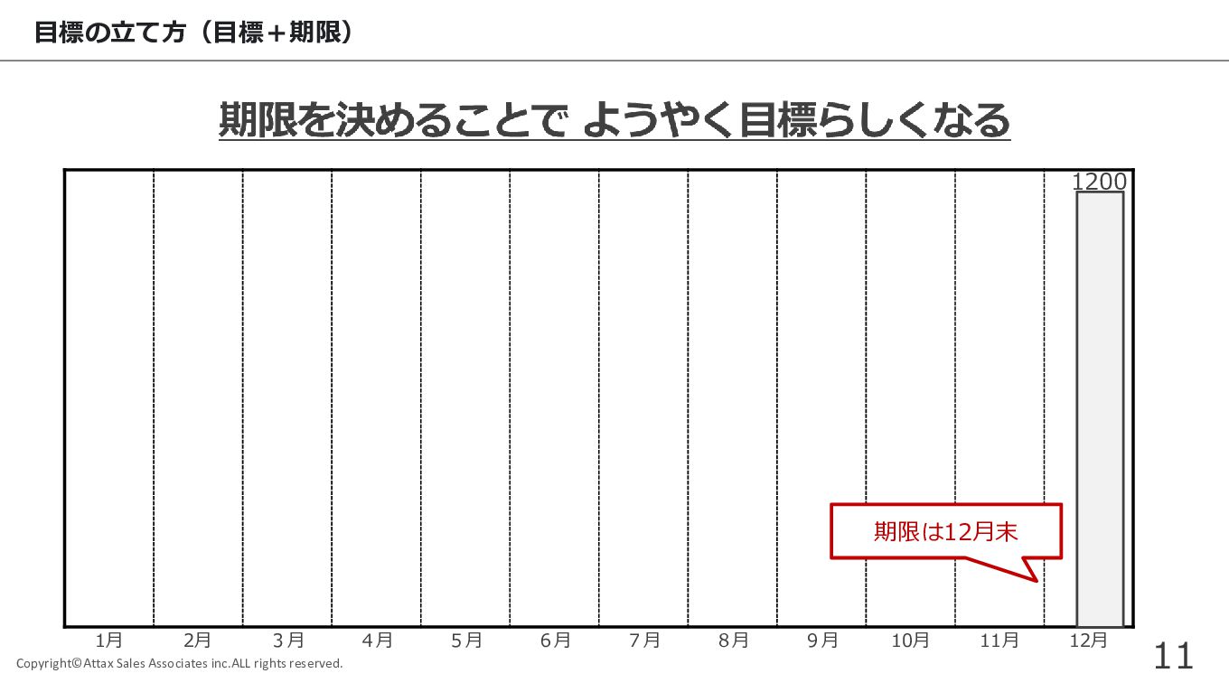 目標の⽴て⽅(目標+期限) Copyright©Attax Sales Associates inc.ALL rights reserved. 11 12月 11月