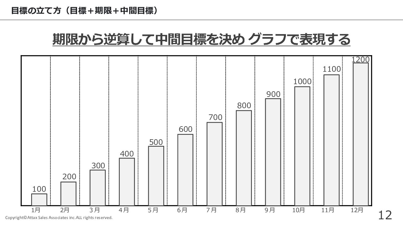 目標の⽴て⽅(目標+期限+中間目標) Copyright©Attax Sales Associates inc.ALL rights reserved. 12 12月 11月