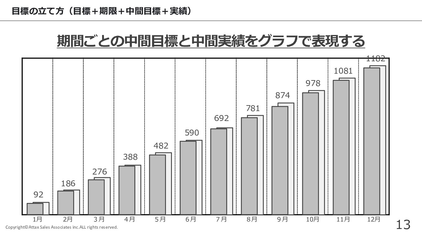 目標の⽴て⽅(目標+期限+中間目標+実績) Copyright©Attax Sales Associates inc.ALL rights reserved. 13 12月 11月