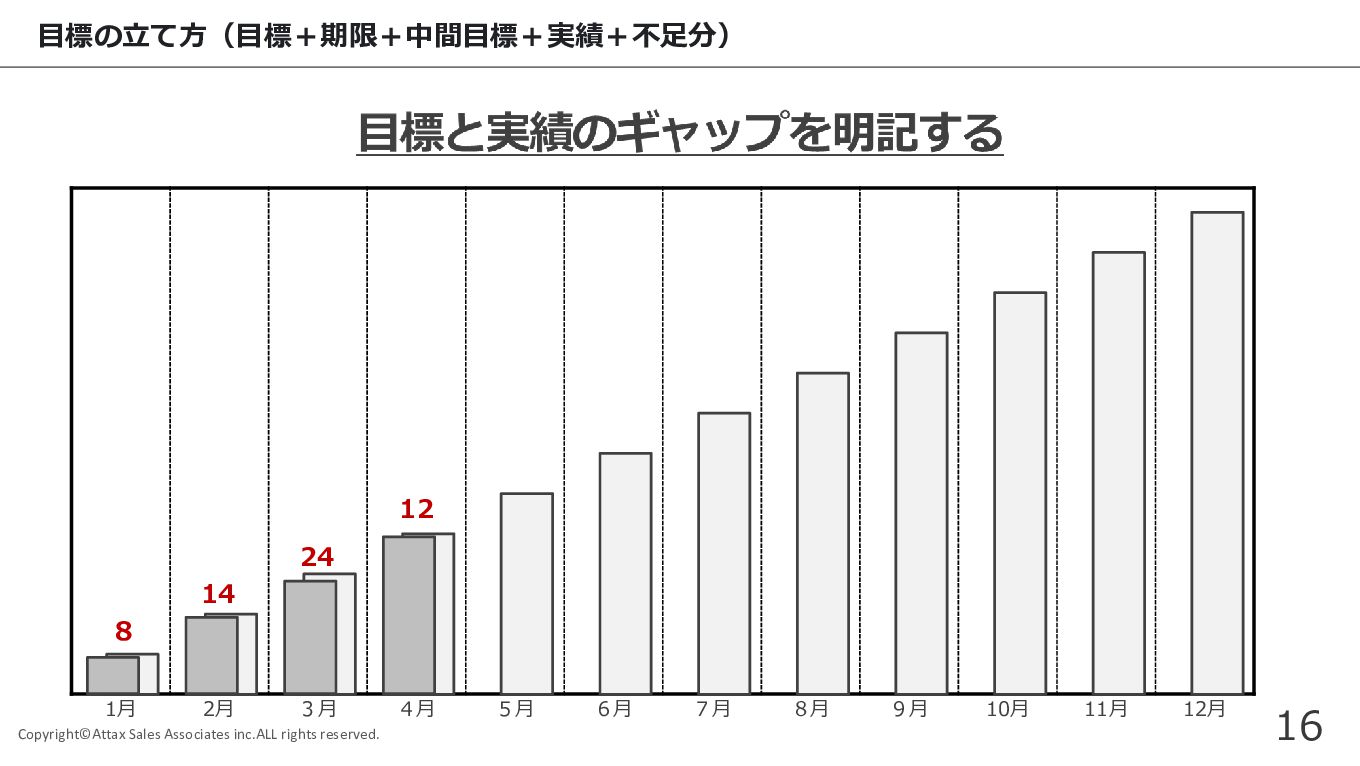 目標の⽴て⽅(目標+期限+中間目標+実績+不⾜分) Copyright©Attax Sales Associates inc.ALL rights reserved. 16 12月 11月