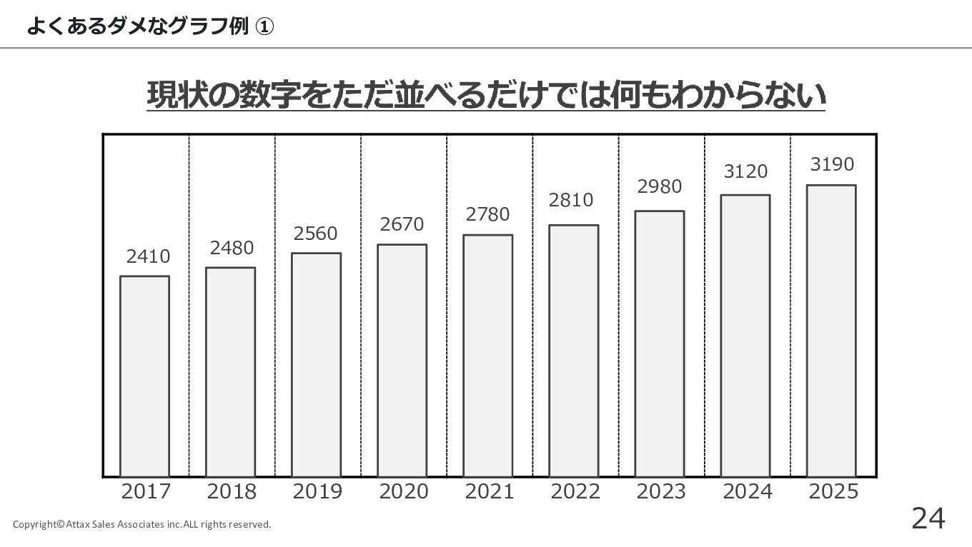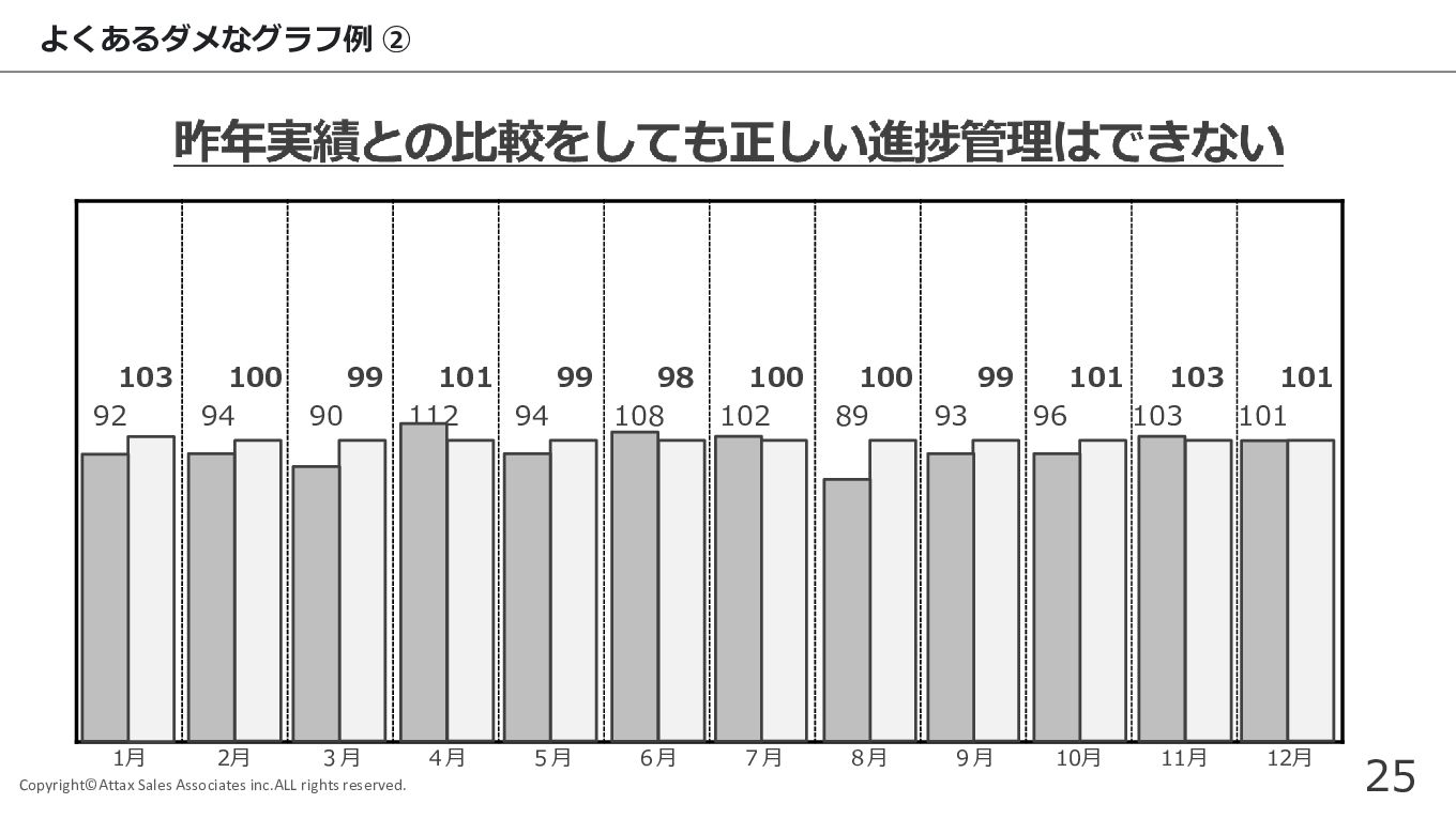 よくあるダメなグラフ例 ① Copyright©Attax Sales Associates inc.ALL rights reserved. 24 2025