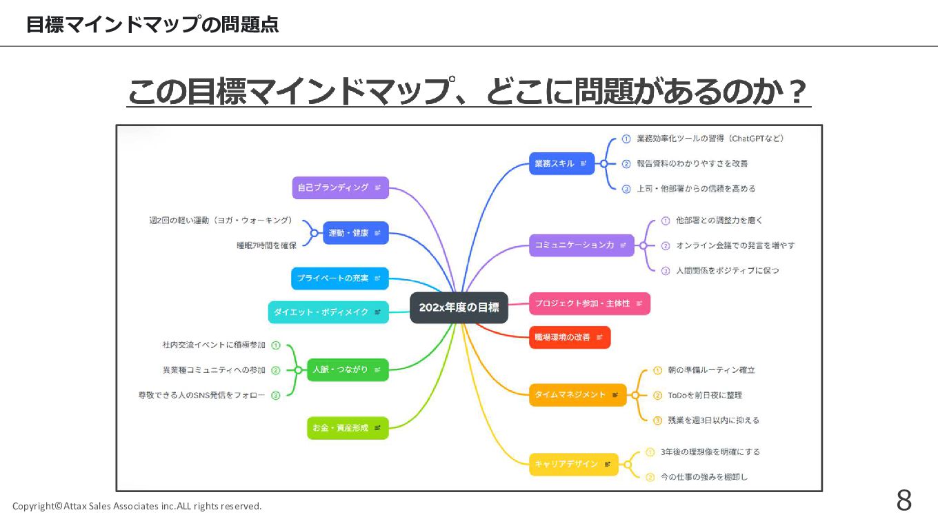 目標マインドマップの問題点 Copyright©Attax Sales Associates inc.ALL rights reserved. 8