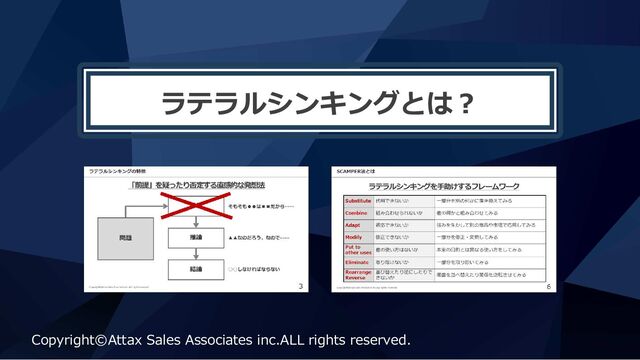 3. ラテラルシンキング(水平思考)のメリット Copyright©Attax Sales Associates inc.ALL rights reserved. 5 前提 推論