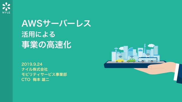 2019年9月24日(火)@TECH PLAY SHIBUYA Serverless 技術勉強会#1〜フルマネージドサービス活用事例〜 ナイル株式会社 モビリティサービス事業部 CTO 梅本 雄二