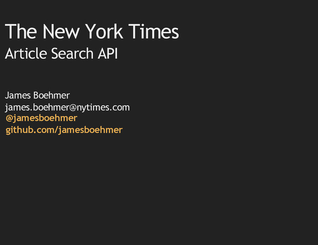 an article in the archives. You'll want to use the new Article Search API. Use Built in help docs at Developer Network docs at Don't forget the api-key parameter! api.nytimes.com/svc/search/v2/articlesearch.json /svc/search/v2/help.json developer.nytimes.com