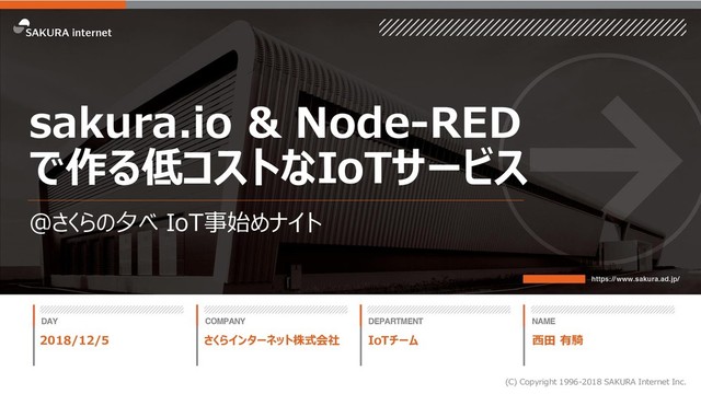 SAKURA Internet Inc. さくらインターネット株式会社 IoTチーム 西田 有騎