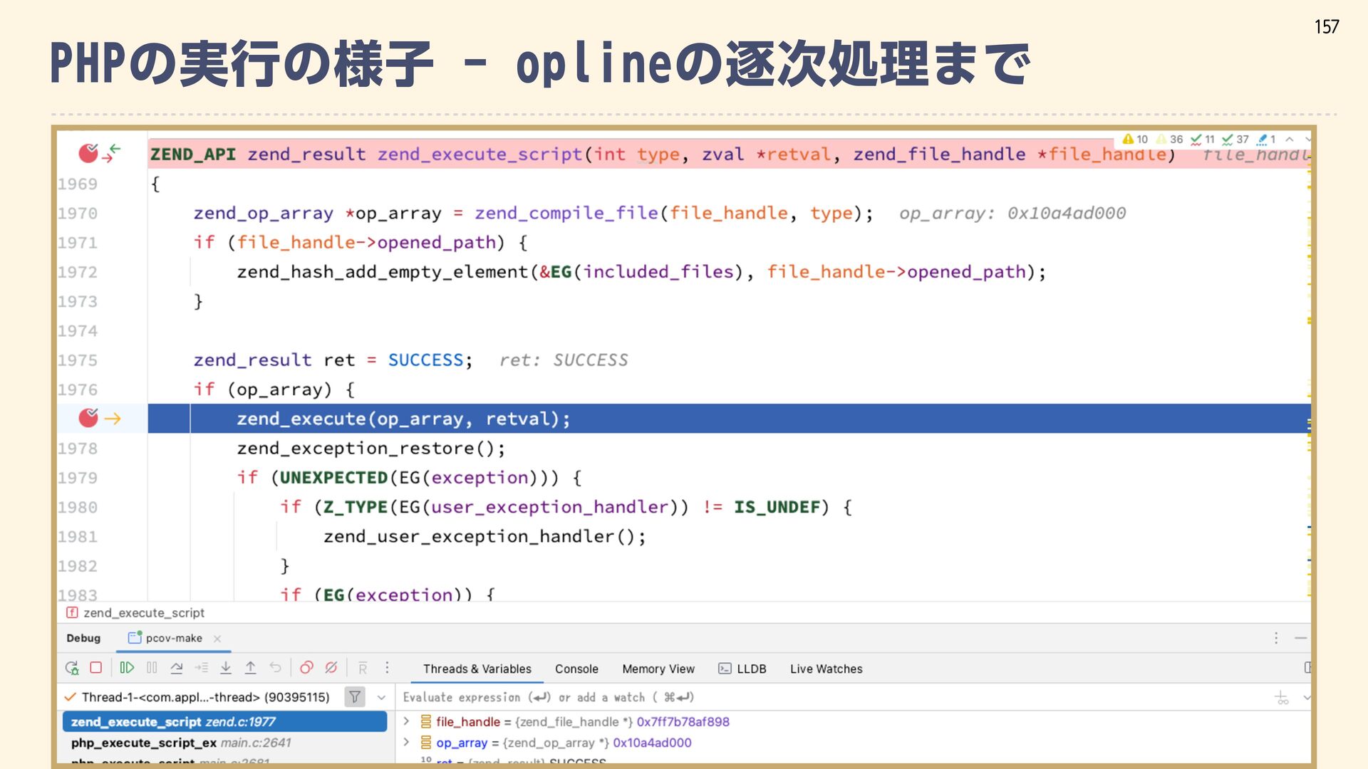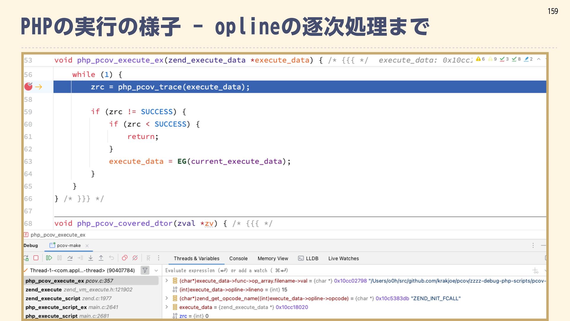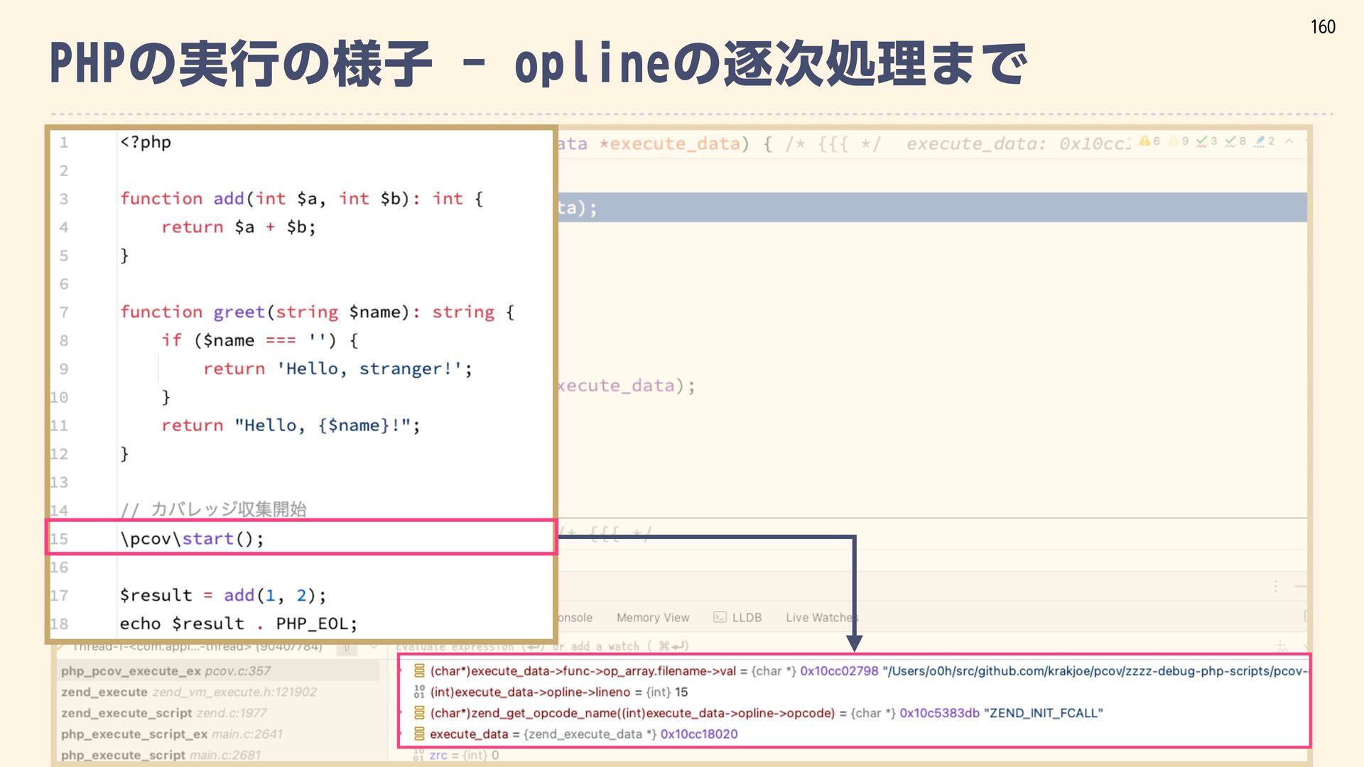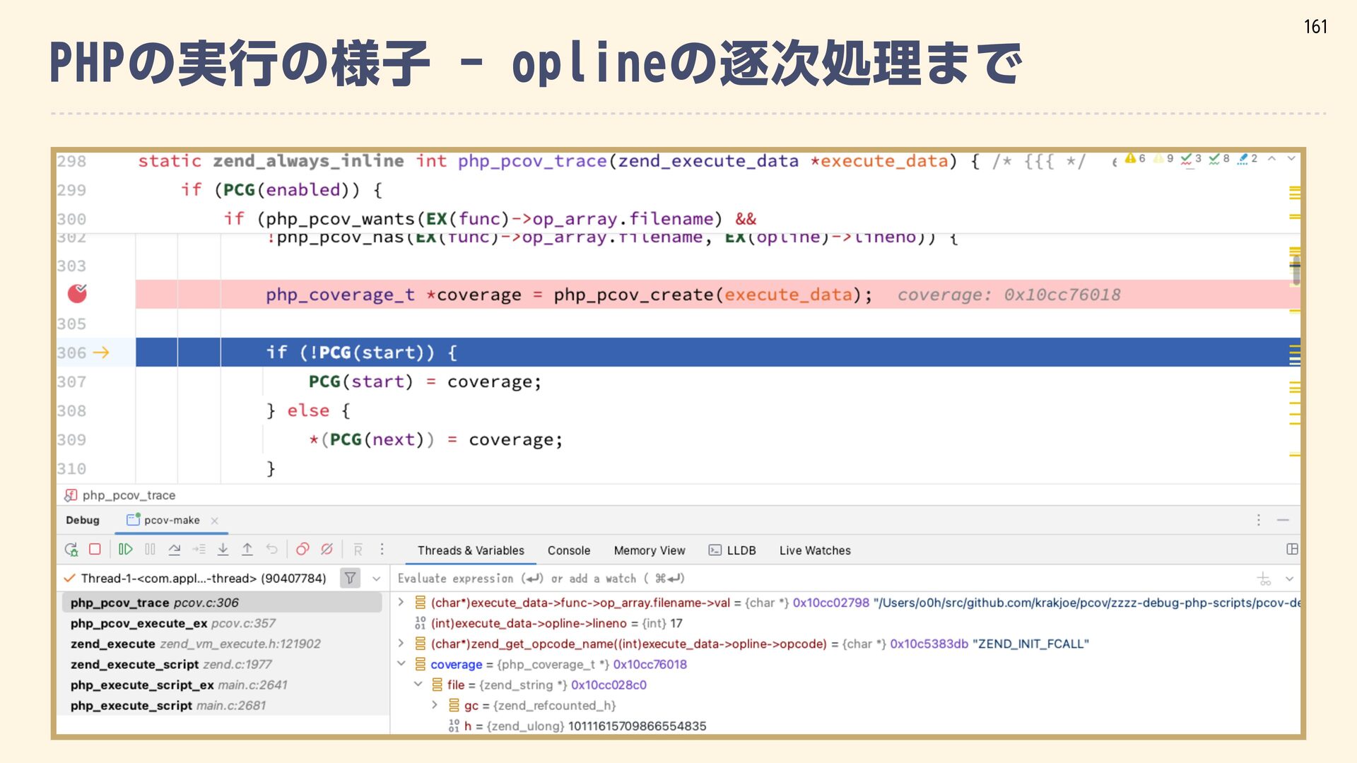 /opt/pcov-demo.php: line 6:-1 line 7:-1 line 8:-1 line 9:-1 line 12: -1 line 14: -1 line 15: -1 line 18: -1 line 20: -1 line 23: -1 line 24: -1 line 25: -1 line 27: -1 全ての対象行に対する、 「行番号」と「結果」を 持つデータを構築 この時点では、 「-1 = 未実行」で 埋めておく