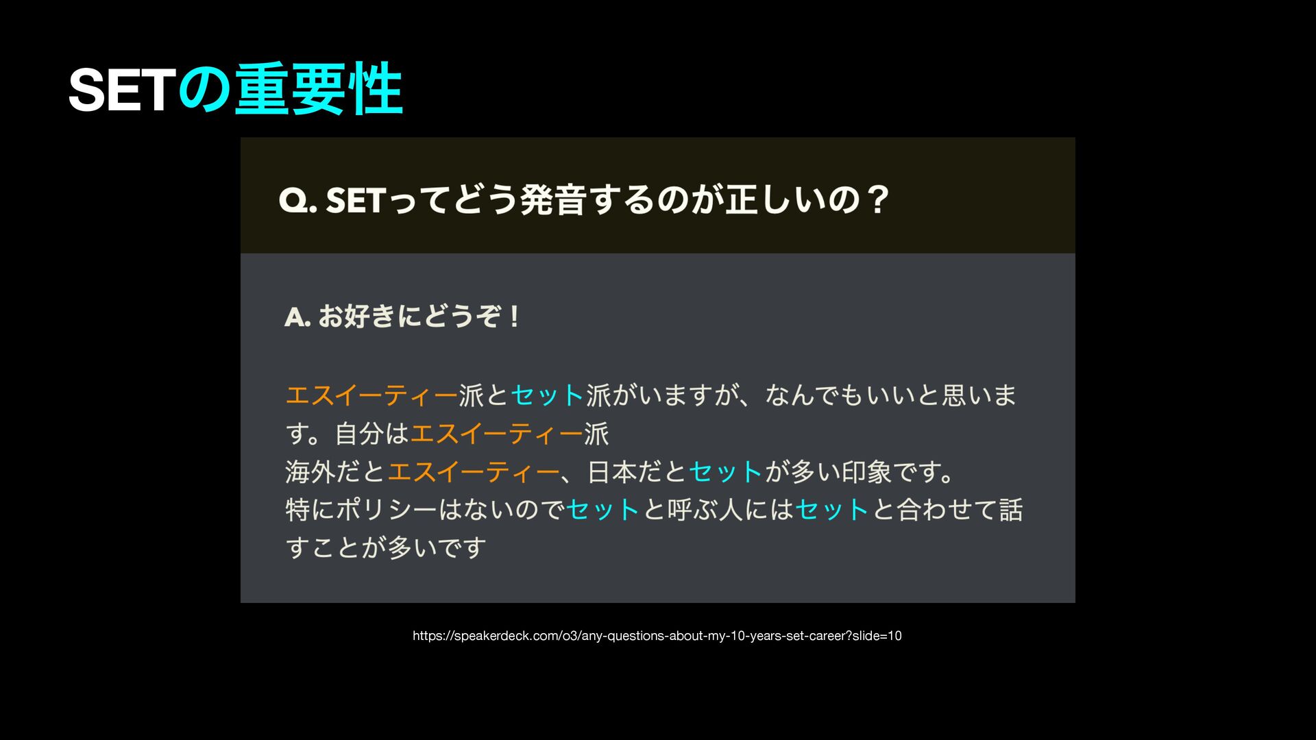 https://speakerdeck.com/o3/any-questions-about-my-10-years-set-career?slide=11 SETͷॏཁੑ