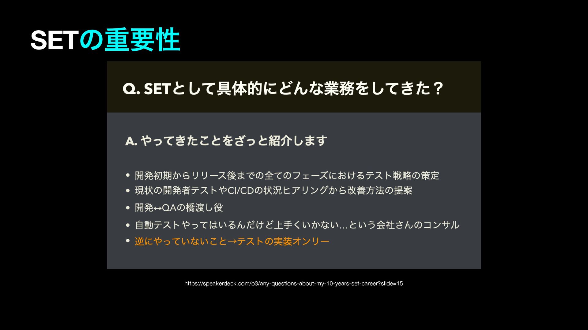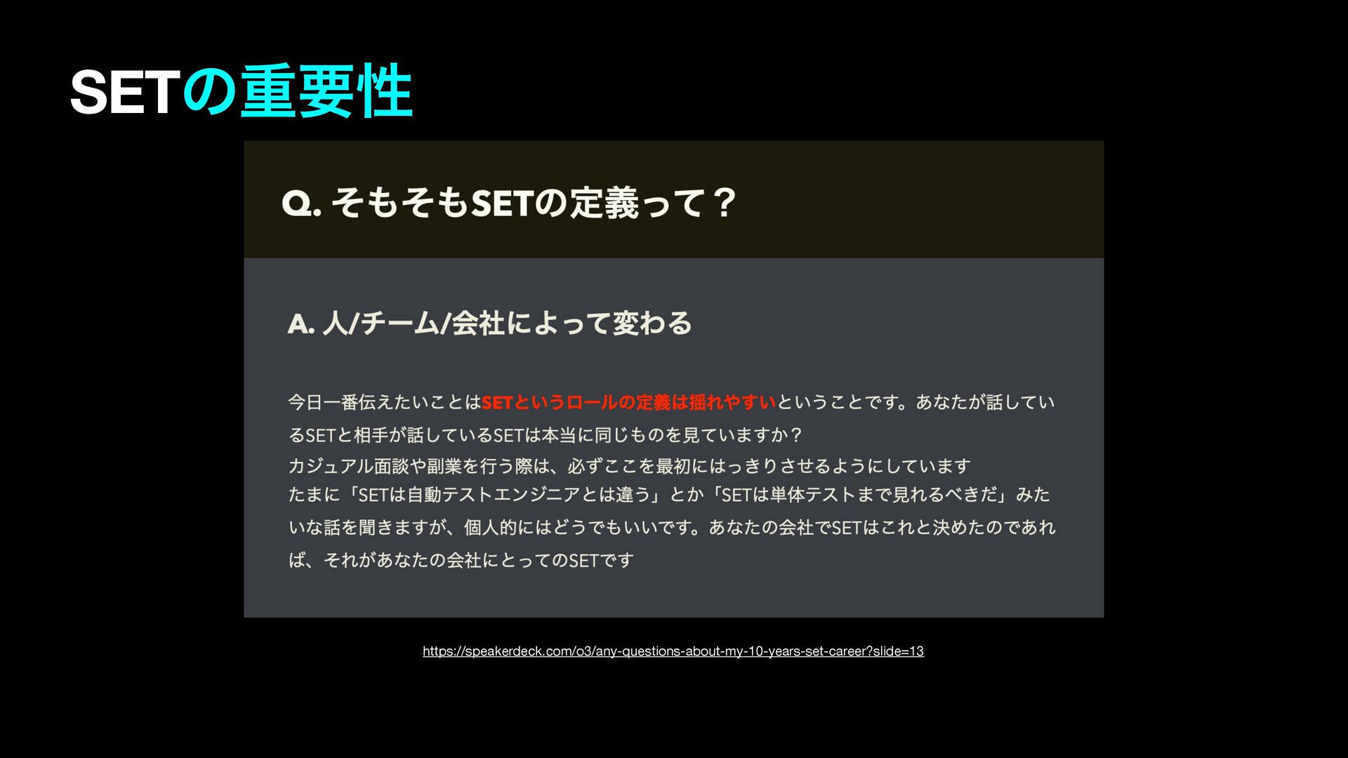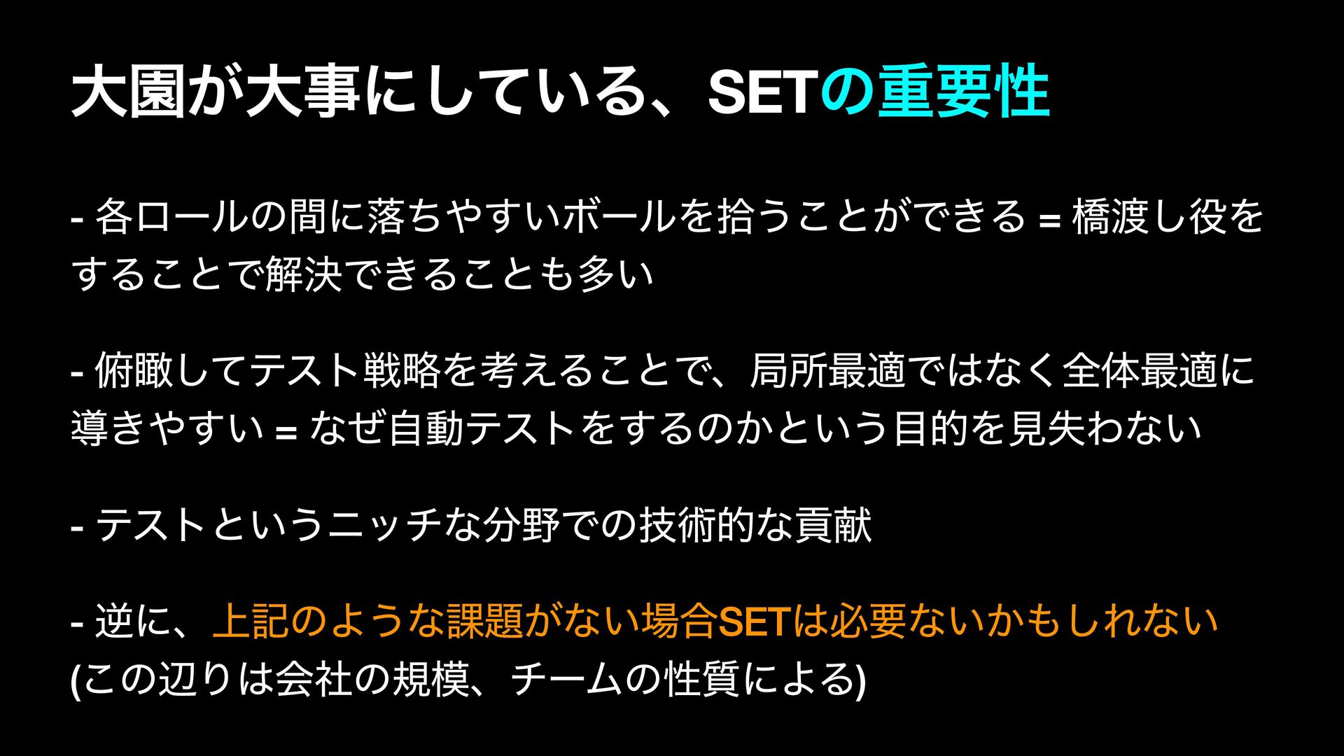 "ࣗಈςετͷ͠͞" ͱ "SETͷॏཁੑ" ࠓ͍͑ͨ͜ͱ
