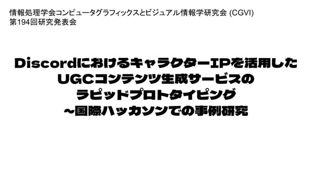 DiscordにおけるキャラクターIPを活用したUGCコンテンツ生成サービスの ラピッドプロトタイピング ~国際ハッカソンでの事例研究