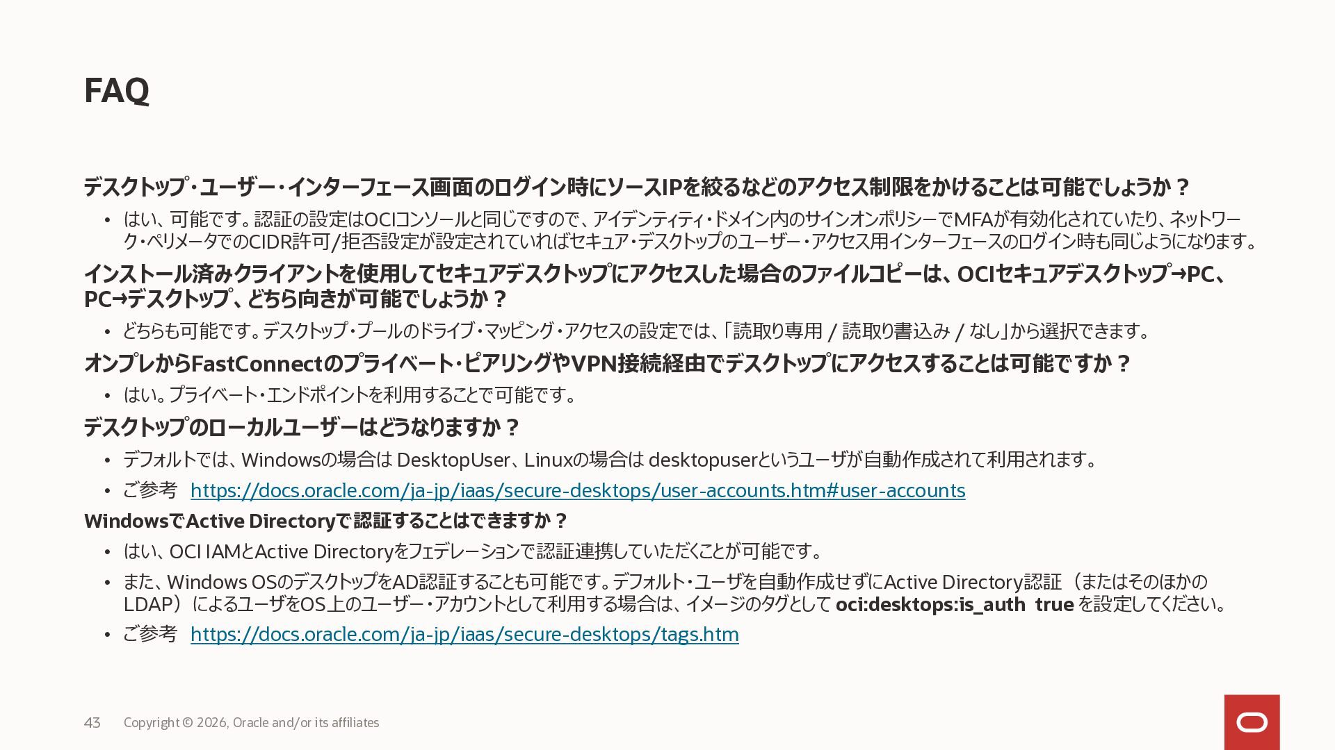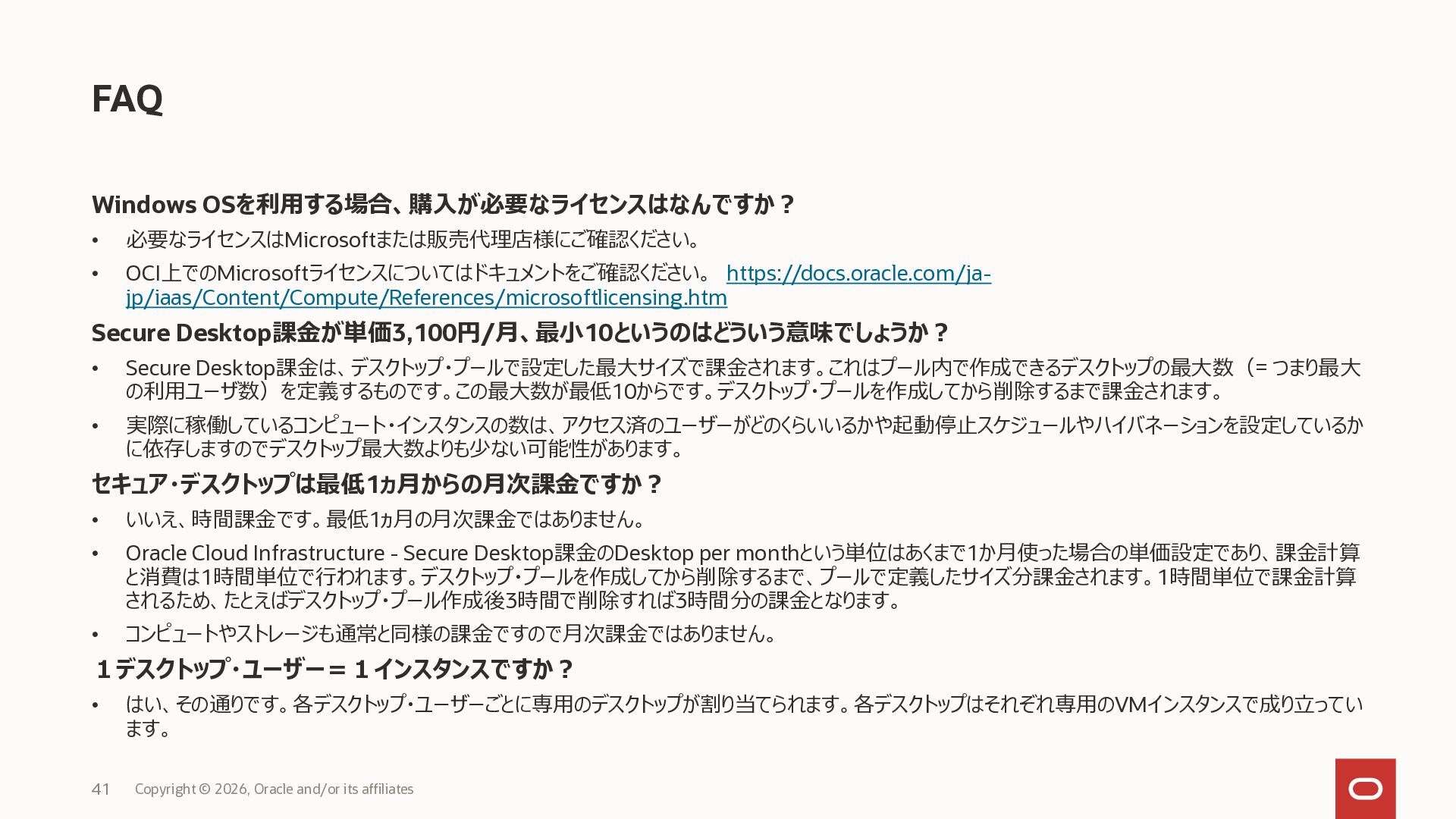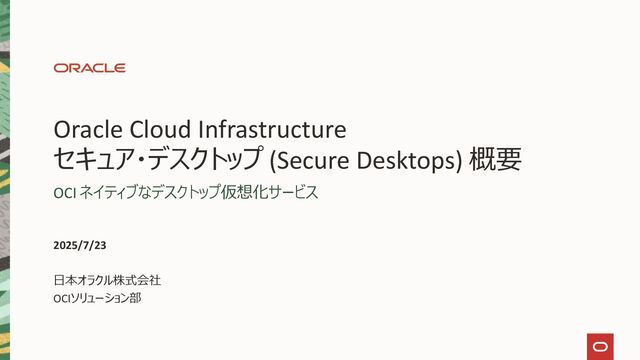 2023年6月にリリースされたOracle Cloud Infrastructureのセキュア・デスクトップ・サービス(OCI Secure Desktops)の概要資料です。
