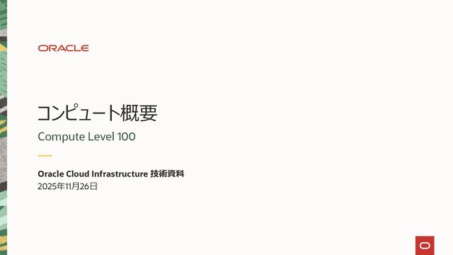 OCIの技術説明資料 コンピュートサービスの概要編 (Level 100) です。