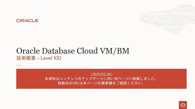 Database Cloud VM/BM (2021/01/26) 本資料はコンテンツのアップデートに伴い別ページに移動しました。 移動先のURLは本ページの概要欄をご確認ください。