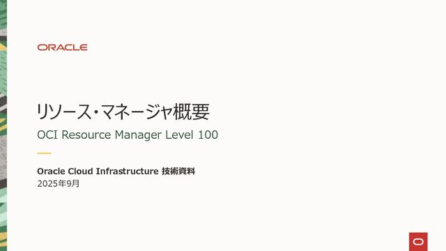OCIの技術説明資料 リソース・マネージャ(Resource Manager)の概要編 (Level 100) です。