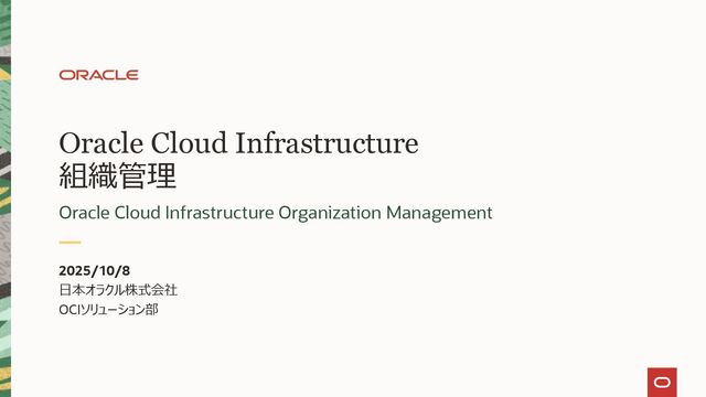 OCIの技術説明資料 組織管理 (Organization Management) の概要資料です。
