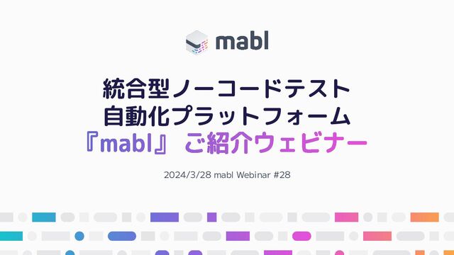 2024/3/28 統合型ノーコードテスト自動化プラットフォーム 『mabl』 ご紹介ウェビナーにて使用したスライドです。