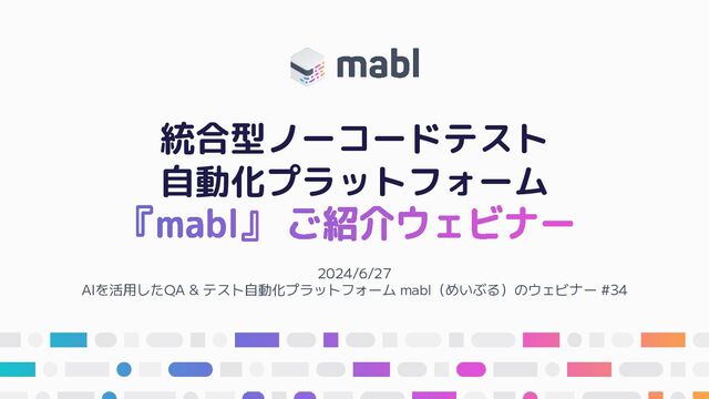 統合型ノーコードテスト 自動化プラットフォーム 2024/6/27 AIを活用したQA & テスト自動化プラットフォーム mabl(めいぶる)のウェビナー #34
