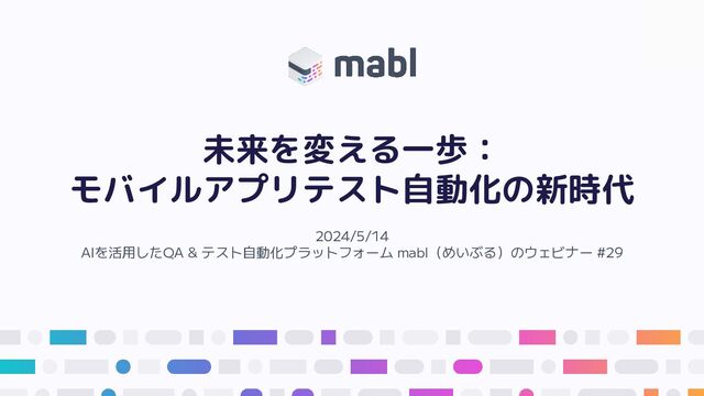 未来を変える一歩: モバイルアプリテスト自動化の新時代 2024/5/14 AIを活用したQA & テスト自動化プラットフォーム mabl(めいぶる)のウェビナー #29