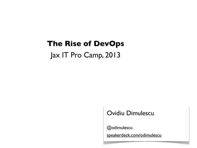 1. The Rise of DevOps Jax IT Pro Camp, 2013 Ovidiu
